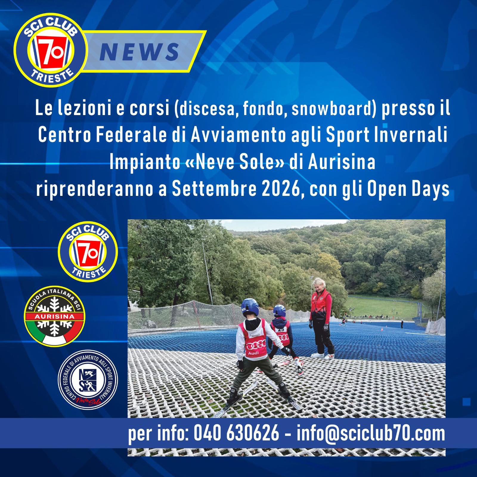 Sciare in una città di mare? Con il Settanta è possibile. Le nostre squadre agonistiche giovanili dello sci alpino hanno l’opportunità di allenarsi non solo sui ghiacciai ma anche nel nostro centro sportivo NEVE SOLE di Aurisina sul carso, a pochi minuti di auto da Trieste. Una preparazione specifica per le discipline tecniche dello slalom e del gigante, alternata a quella sulla neve, che consente poi agli atleti di presentarsi tecnicamente preparati alle gare grazie al team di allenatori e tecnici professionali.